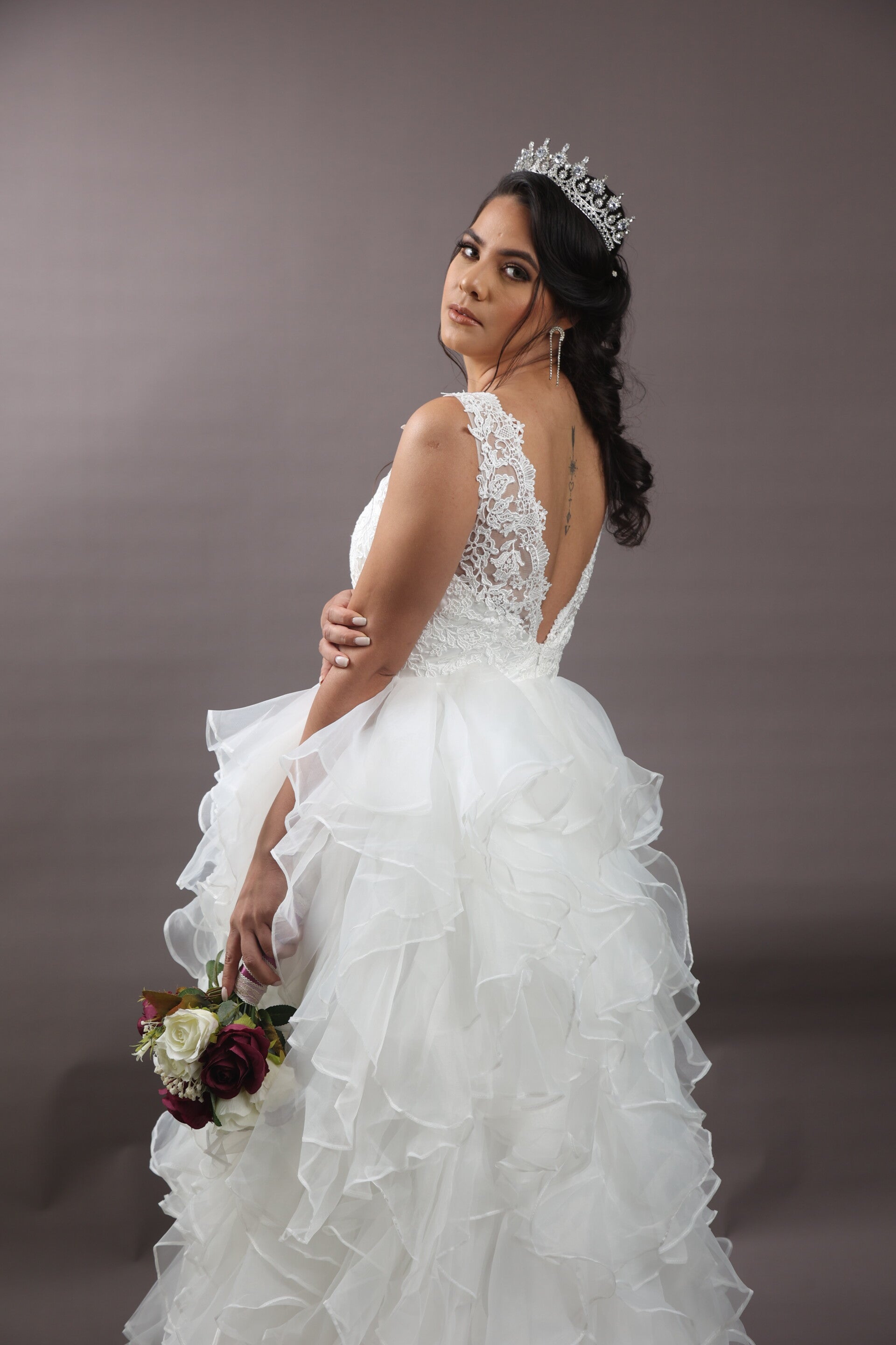 Vestido de encajes, y falda de Vuelos.
