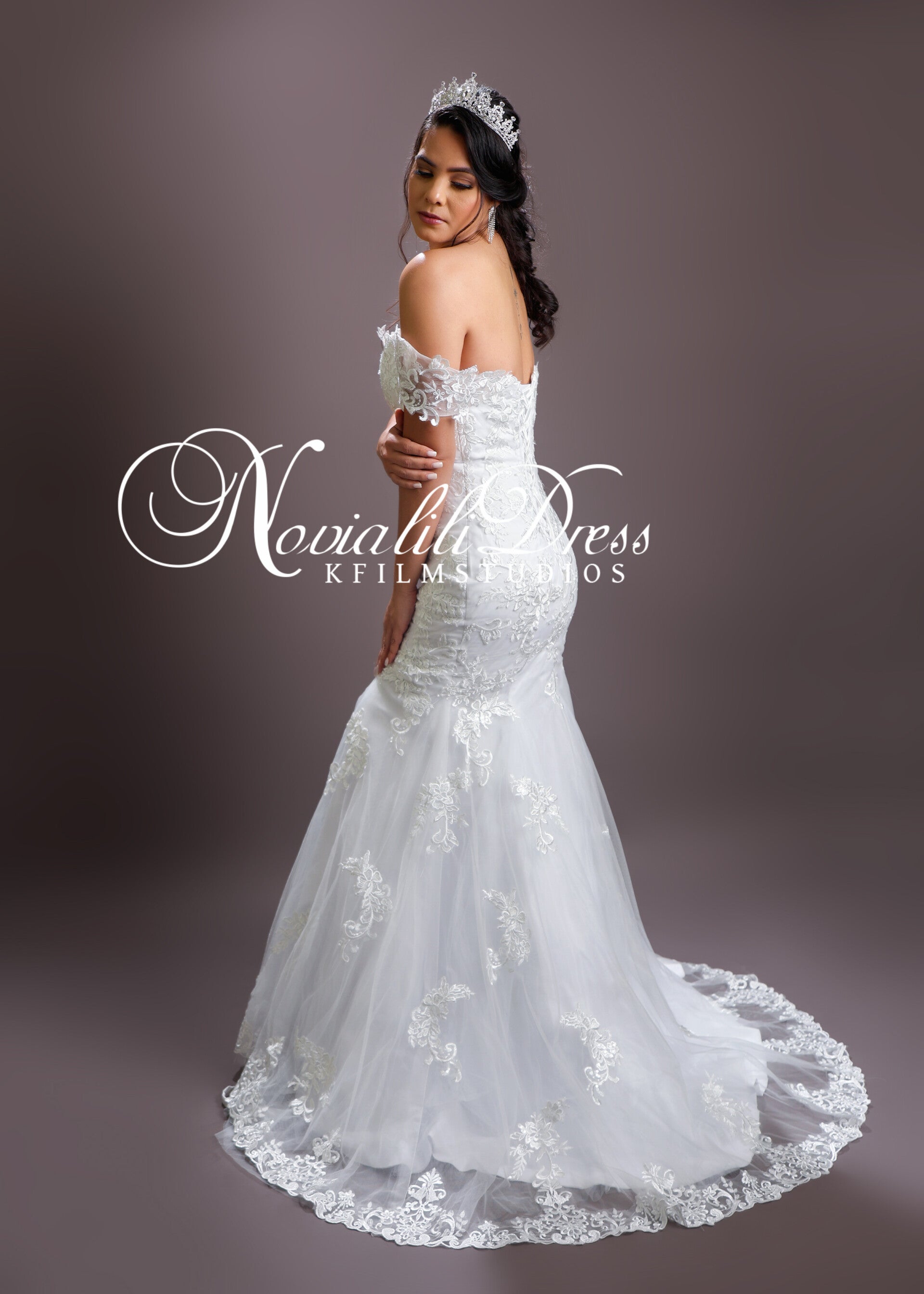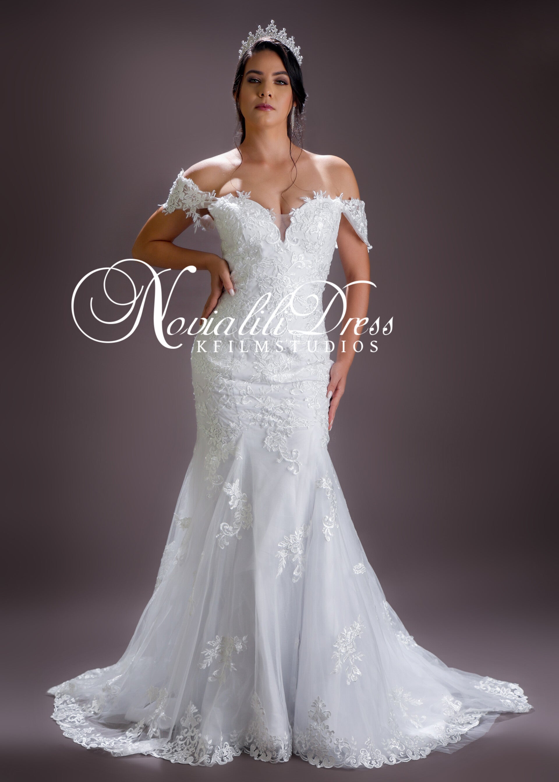 VESTIDO DE NOVIA CORTE SIRENA DE ENCAJES, MANGAS AGUA LLUVIA